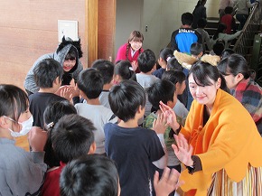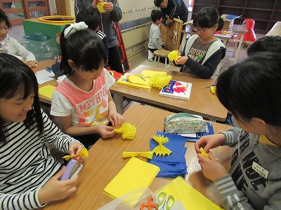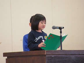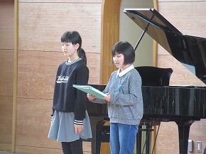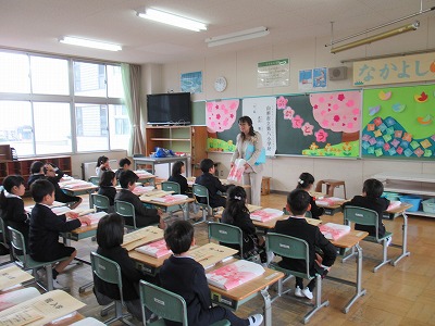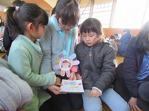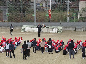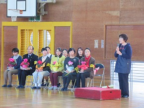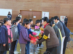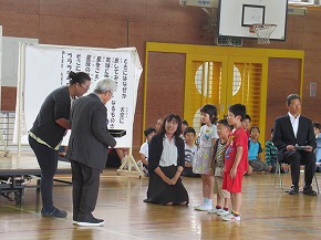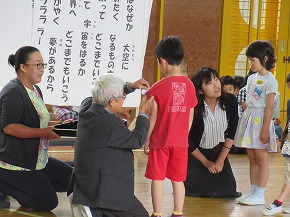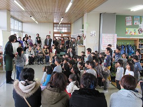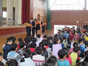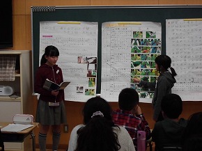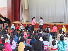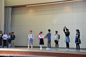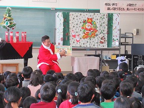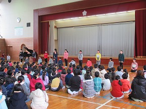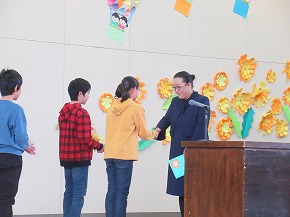 | 子どもたちの登校を見守っていただいている交通ボランティアの方々や読み聞かせをしていただいているよみきかせ隊の皆様をお招きして、感謝の会を開きました。今までの感謝の気持ちを込めた手紙や花鉢を贈りました。皆さんに喜んでもらえたので、子どもたちもうれしそうでした。冬を迎え、これからますます寒くなりますが、今後も子どもたちの安全を見守っていただければと思います。12月には、子どもたちがたいへん楽しみにしているクリスマスお話会も予定されています。本好きの子どもになるようこれからもよろしくお願いします。 |