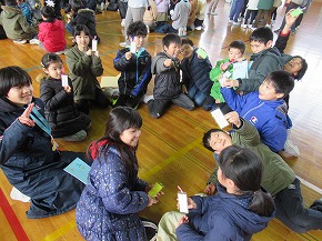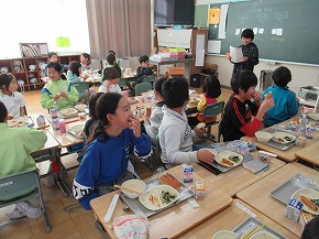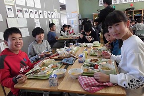 | 給食委員会の主催で交歓給食が行われました。クラスを半分すつ入れ替えて兄弟学年と一緒に給食を食べる会です。6年生は1年生と、5年生は2年生と、4年生は3年生と一緒に楽しく話をしながら給食を食べました。ふだんとは違った雰囲気で、ワクワクドキドキの給食でした。給食後のロング昼休みの時間には、たてわり班で時間いっぱい遊びました。 |