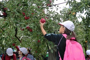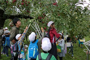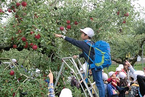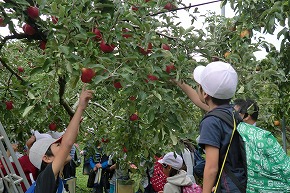 | 3年生は社会科見学で、シベールとフルーツ園に行きました。シベールでは、ラスク工場を見学し、ラスクができる様子について興味深く説明を聞いたり、見たりしました。また、フルーツ園ではりんごの栽培などについてのお話を聞き、実際にりんごの収穫を体験しました。 |