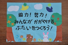 | 運動会まであと1週間、応援団の練習にも力が入ってきました。応援グッズや看板づくり、アナウンス、準備運動など運動会に向けて各係の活動にも子どもたちは精一杯取り組んでいます。水曜日からは全校練習も始まります。19日はぜひご来校いただき、子どもたちが競技や応援にがんばる姿にご声援ください。 |