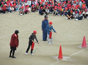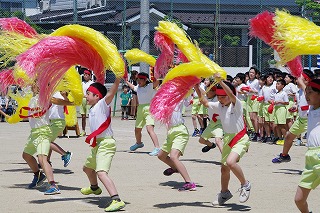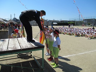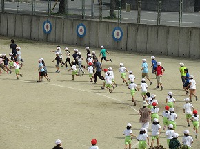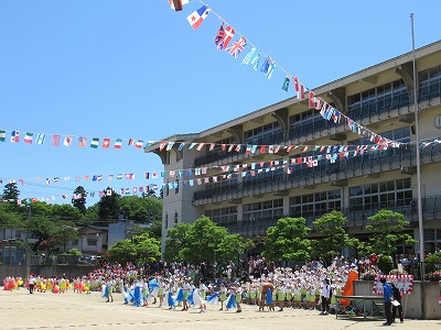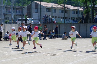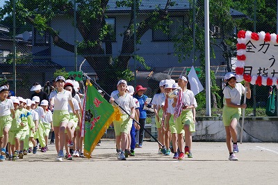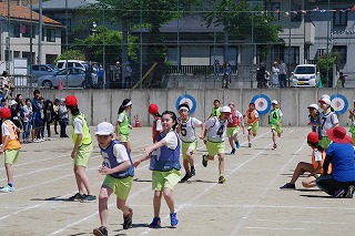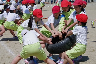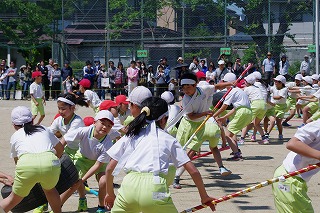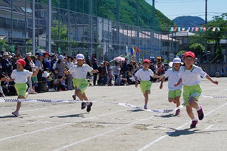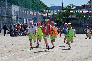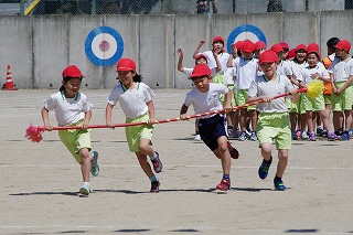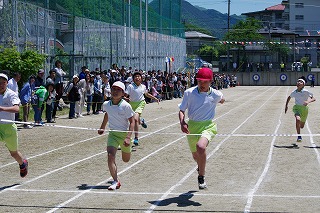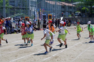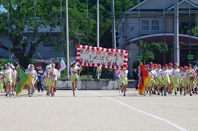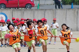 | 雨のため1日遅れの運動会になりましたが、さわやかな青空の下、運動会が始まりました。子どもたちの元気な歓声と力強い応援の声がグラウンドいっぱいに響いています。さあ!勝負の行方は・・・・・・。 |