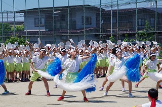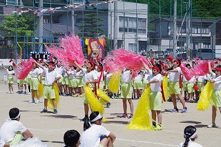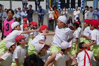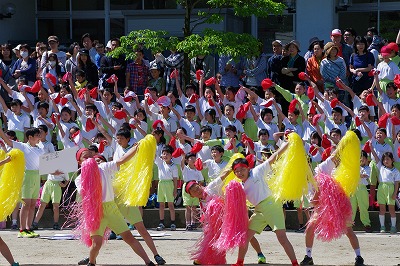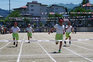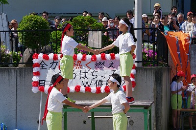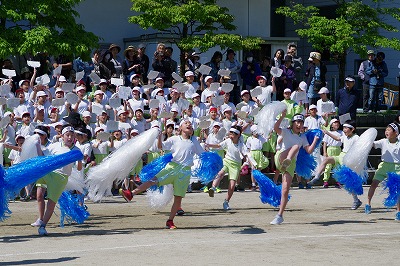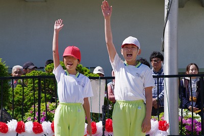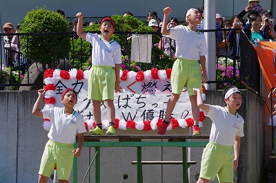 | 両組の応援合戦を皮切りに競技が始まり、個人走や団体種目など子どもたちはどの競技にも全力で取り組みました。前半は赤組がリードしていましたが、後半は白組が追い上げ、最後の競技まで勝敗がわからないまれにみる熱戦となりました。競技種目は最後の騎馬戦で逆転した白組の優勝、応援賞は両組譲らず同点優勝という結果となりました。全校の中心となって運動会を盛り上げてくれた応援団や実行委員の子どもたちに大きな拍手を送ります。お忙しい中、子どもたちのがんばりにあたたかいご声援をいただいた保護者の皆様、地域の皆様に感謝申し上げます。 |
