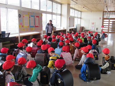 | 入学式から1週間がたち、1年生もだいぶ学校に慣れてきたようです。少しずつ学習も始まり、6年生のお兄さん、お姉さんたちとの交流にも取り組んでいます。来週からは、給食も始まります。いろいろな活動に前向きに取り組んでいってほしいものです。 安全な下校のため、1年生は下校班をつくり、集団で帰っています。お迎え当番の保護者の皆様、子どもたちの安全を見守っていただき、ありがとうございます。これからも、よろしくお願いいたします。 |