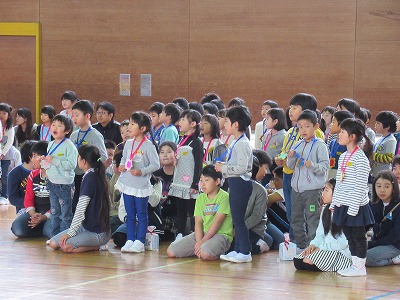 | 4日に第八小学校開校65周年記念式を挙行しました。校長先生や同窓会の方から開校当時のことなどの話を聞き、子どもたちも八小の歴史や伝統を自分たちの手で創っていくんだという新たな思いをもったようでした。 記念式後には、校内マラソン大会が行われ、1年生と2年生はグラウンドで、3年生以上は馬見ヶ崎川の河川敷で力一杯走りました。たくさんの保護者の皆様や友だちの声援をうけ、子どもたちも練習の成果を出し切ったいい走りができました。ご声援いただきありがとうございました。 |
