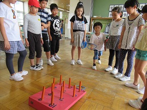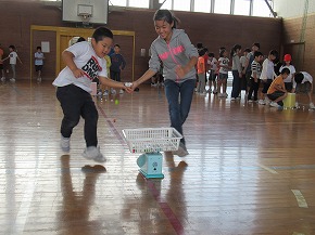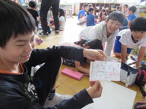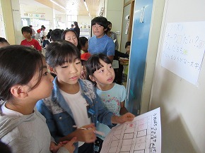 | 2校時には、縦割り活動のイベントとして、「うめばちフェスティバル2018」を実施しました。うめばち班(縦割り班)ごとに校内を巡り、様々なゲームに挑戦しながらポイントを集め、お宝をゲットする楽しいイベントです。ゲームの内容や運営なども6年生が中心となって子どもたちで進めていきました。この活動を通じて、うめばち班の絆がさらに深まったようです! |
