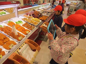 | 3年生の社会科の学習で、学級ごとにスーパーマーケット見学に行ってきました。学区にあるヤマザワあさひ町店を見学させていただきました。買い物に行ったことがある子どもたちも多く、売り場の工夫やバックヤードの様子などを興味深く見学してきました。授業で学習したことと今回見学したことを合わせて考え、学びをますます深めていってほしいと思います。見学にご協力いただきありがとうございました。 |