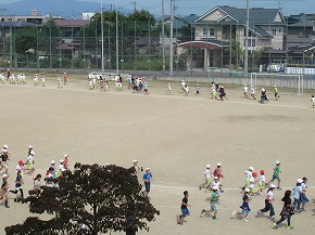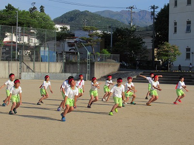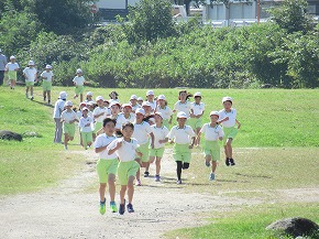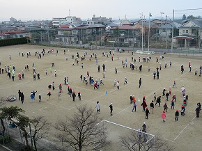 | 今日は爽やかな天気となり、中間休みにいきいきタイムが行われました。今回のいきいきタイムは、10月4日に開催される校内マラソン大会に向けて5分間走に取り組みました。リズミカルな音楽に合わせて、全校のみんなでグラウンドを走りました。これからもいきいきタイムが予定されています。目標タイム達成をめざし、元気いっぱい取り組んでいきましょう! |
