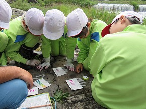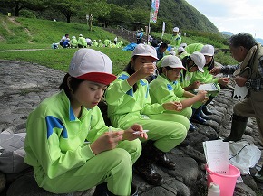 | 今日は天気にも恵まれ、多くの学年が馬見ヶ崎川での校外学習を実施しました。 6年生は、総合的な学習の時間に取り組んでいる環境学習の一環として馬見ヶ崎川の水質調査を行いました。美しい山形・最上川フォーラムの皆さんにご指導いただきながら、水質のパックテストや水生生物による水質調査に興味をもって取り組む姿が見られました。予想した以上にきれいな水質という結果に驚くとともに新たに課題を見つけた子どもたちでした。川から戻った後には、校庭を流れる「キラキラ水路」の水質調査にも取り組みました。 1年生は虫を探しにジャバ公園に出かけました。みんな虫かごを下げて、虫を探して公園内を走り回っていました。中には、腕を頭の上いっぱいに伸ばして、トンボが止まるように指を1本立てているかわいい姿も見られました。 他に2年生も生活科の学習で生き物探し、3年生は体育でマラソン大会の試走を馬見ヶ崎川原で行いました。馬見ヶ崎川は八小の大切な地域教材となっています。 |