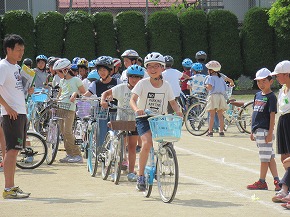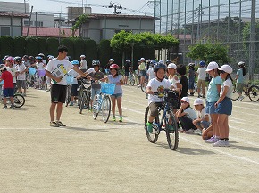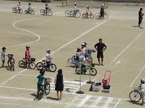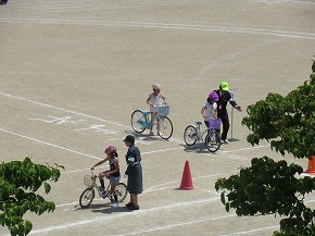 | 自転車の安全な乗り方について学習する安全教室が行われました。はじめに交通専門指導員の方から、自転車の点検の仕方、安全な自転車の乗り降りや横断の仕方などを教えていただきました。その後グラウンドの模擬コースで実地学習に取り組みました。左右の安全確認などを何度も繰り返しながら、正しい自転車の乗り方について学びました。交通事故0をめざし、学習したことを生かして安全な自転車の乗り方を実践していきましょう。保護者の皆様、地域の皆様のご協力をお願いいたします。 |