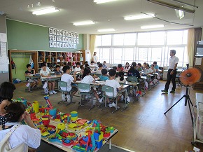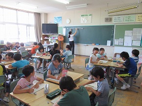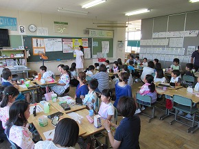 | 今年度2回目の学習参観を行いました。大変暑い中でしたが、たくさんの保護者の皆様に子どもたちの学習の様子をご覧いただきました。ご参観いただき、ありがとうございました。フリー参観の前に3年生のブラッシング指導が行われ、親子で染め出しをして磨き残しを確かめたり、歯磨きの仕方を森谷歯科医院のスタッフの方に教えていただいたりしました。学習だけでなく、子どもたちがつくった作品や七夕の短冊なども見ていただきました。子どもたちもお家の人の様子を気にしながらも、とても意欲的に学習に取り組んでいました。 |