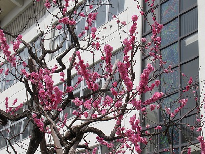 | 暖かい日が続き、学校前の桜並木の桜もちらほら咲き始めました。八小のシンボルである校門前の紅白の梅の木もきれいな花をつけています。 明日は、平成30年度のスタートの日、始業式です。それぞれ1年進級した子どもたちが久しぶりに登校します。元気に登校する子どもたちの姿を梅の木が見守ってくれているようです。素敵な子どもたちとの新たな出会いを楽しみにしています! |