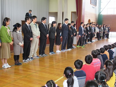 | 今日は第八小学校の新任・始業式がありました。登校した子どもたちは、ドキドキしながら昇降口に掲示してある新しいクラス名簿から自分の名前を探していました。新しいクラスでまた仲間たちとの絆をつくっていってほしいと思います。 新任式では、12名(本日は10名)の新しい先生方をお迎えしました。また、7名の新しいお友達も仲間に加わりました。代表児童の歓迎の言葉では、校歌を歌うパフォーマンスも取り入れて、八小のよさを紹介してくれました。新しい先生方にもうめばちっ子のよさが伝わったのではないでしょうか。子どもたちも新しい先生方と出会い、とてもうれしそうでした。 始業式では、校長先生から一人ひとりしっかり目標を持ってがんばりましょうというお話があり、新しい教科書が給与されました。子どもたちの表情にも、がんばっていこうという決意が感じられました。 新たな気持ちでの新学期のスタートです!保護者の皆様、地域の皆様、今年度もよろしくお願いいたします。 |