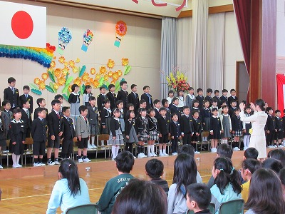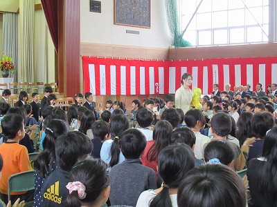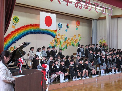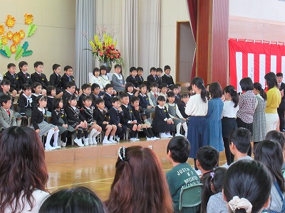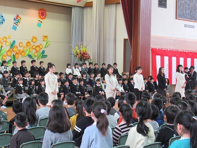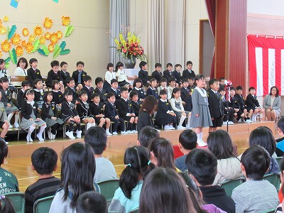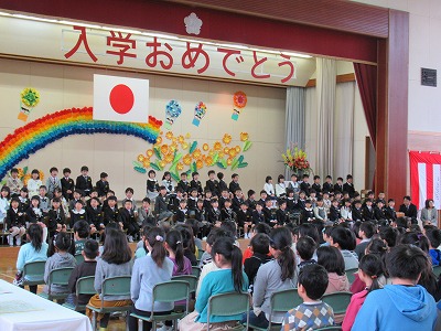 | 71名の新入生全員が参加しての入学式が行われました。今日からピカピカの1年生が八小の新しいメンバーに加わりました。 新入生のみなさん、保護者の皆様、ご入学おめでとうございます。また、ご来賓の皆様方、入学式にご臨席を賜り、ありがとうございました。 6年生の歓迎の言葉は、合奏やマット運動、なわとびなどのパフォーマンスも取り入れた楽しいもので、1年生も目を輝かせて聴いていました。1年生代表のあいさつはとてもはきはきしていて大変立派でした。また、♪「1年生になったら」の歌声も元気があってよかったです。最後は、在校生の素敵な歌声が体育館いっぱいに響き、1年生の入学を心からお祝いしました。あたたかな気持ちあふれる素敵な入学式になりました。 来週からはうめばちっ子の生活が始まります。1年生のみなさん、元気いっぱい学習や活動に取り組み、実りある1年にしていきましょう! |