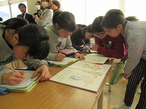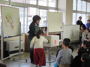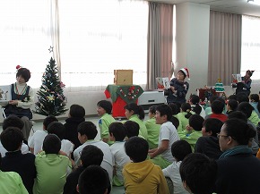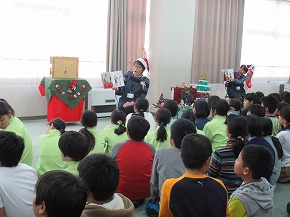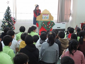 | 今日のロング昼休みの時間によみきかせたいの皆さんによる2回目のお話会が行われました。もうすぐクリスマスということで素敵なクリスマスの飾り付けがされた会場にたくさんの子どもたちが集まり、楽しい絵本の読み聞かせに聴き入っていました。楽しい場面では大きな笑い声が響きました。また、特別ゲストのサンタさんも登場し、楽しいお話を読んでくれました。よみきかせたいの皆さん、素敵なお話のプレゼント、ありがとうございました! また、社会科の学習の1つとして「鉄道と情報ネットワーク」というテーマで出前授業が行われました。JR東日本の方を講師にお招きして、切符の変遷やその中に記されている情報などについて資料等を準備していただき、分かりやすく教えていただきました。 |