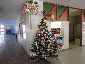 | ロング昼休みの時間にうめばち班(たてわり班)対抗全校ドッジボール大会が体育委員会の主催で行われました。前日の雨で開催が心配されましたが、なんとかグラウンドも乾き、寒さに負けずボールを投げたり、当たらないように走り回ったりする子どもたちの元気な姿がグラウンドいっぱいに見られました。 初雪の便りも届き、冬の訪れを身近に感じる季節になりました。もうすぐクリスマスシーズンということで、昇降口前に素敵なクリスマスツリーが飾られています。毎年PTA母親委員会の皆さんが子どもたちと一緒に飾り付けをしてくれています。子どもたちもクリスマスに思いをはせてツリーを見ています。ありがとうございました。 |