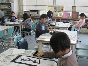 | スキー教室を前にグラウンドでのスキー学習が始まりました。今シーズン初めてスキーをする子どもたちも多く、スキーをはくだけで大変そうでしたが、グラウンドを歩いたり、滑ったりする様子が見られました。 今日から校内書き初め展も始まり、それぞれの教室の前に作品が掲示されています。ご来校の際はぜひご覧ください。また、市の書き初め展にむけての練習会も昨日から始まりました。よりよい作品になるよう代表の子どもたちはがんばっています。 |
